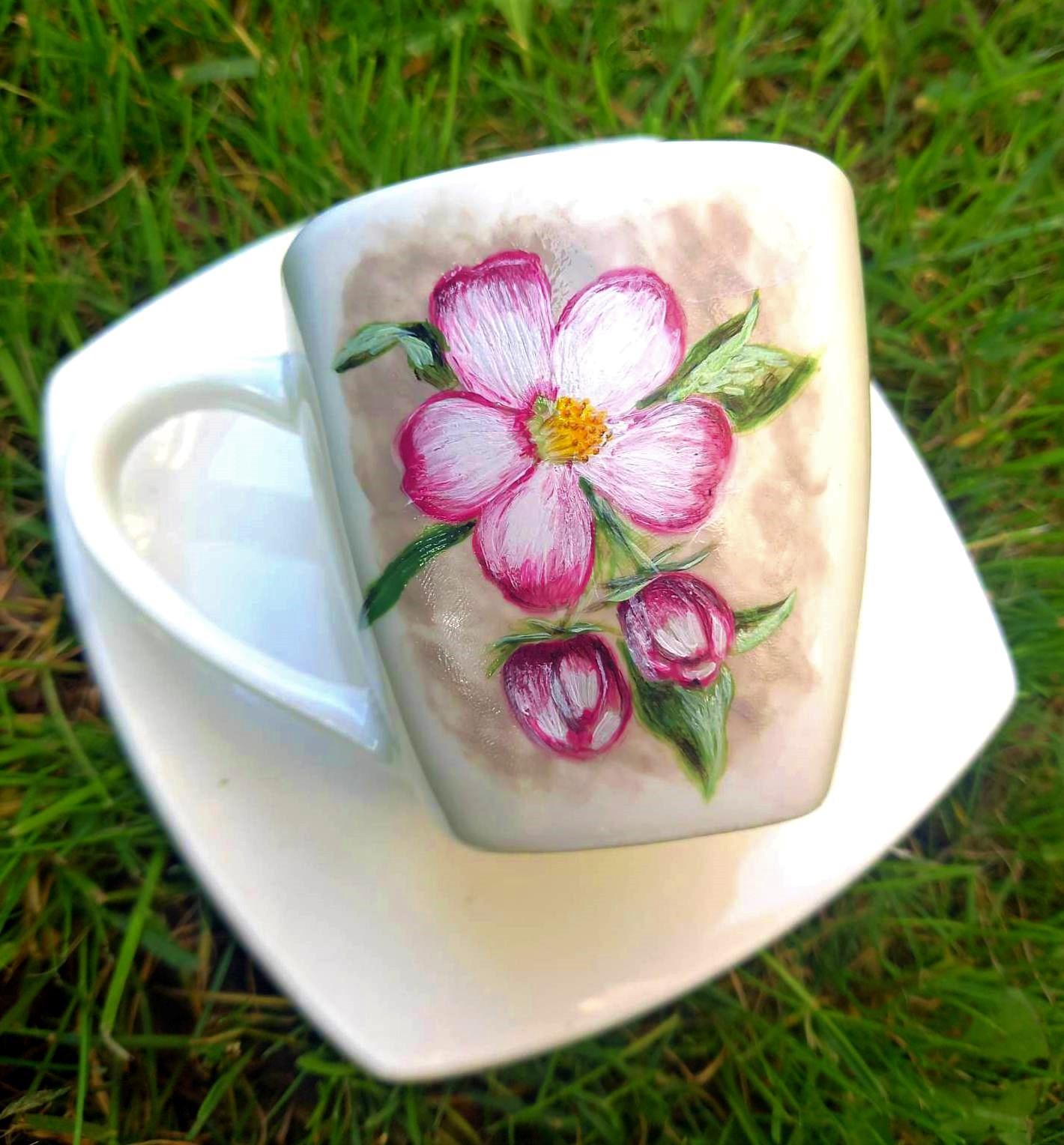 Inspiracje do tworzenia naszej wyjątkowej ceramiki czerpiemy z otaczającego nas świata. Do powstania tego uroczego kubka zainspirowała nas kwitnąca jabłoń sąsiada. Jeśli tak jak my lubisz motywy roślinne i cenisz sobie oryginalne przedmioty- ten kubek powstał właśnie dla Ciebie! Uwierz nam, w tym kubku ulubiona kawa czy herbata będą smakowały jeszcze pyszniej niż zwykle. Nasz kubek to również idealny pomysł na upominek. Zaskocz bliską Ci Osobę i podaruj jej tę jedyną w swoim rodzaju, ręcznie malowaną ceramikę.